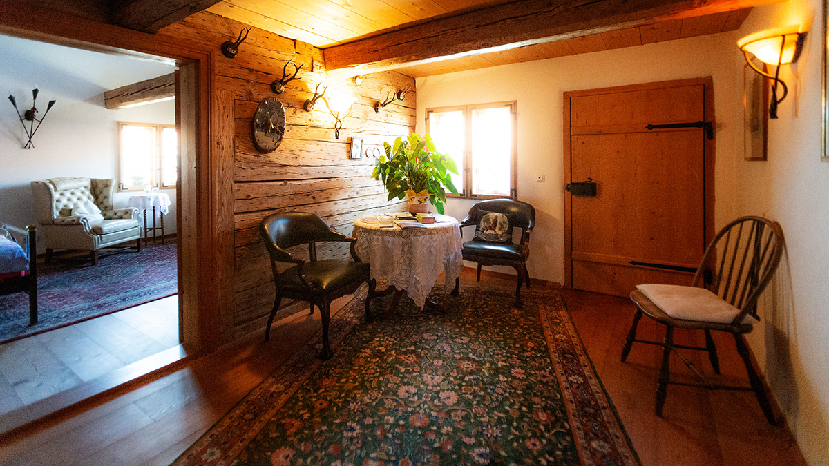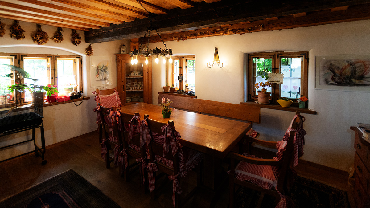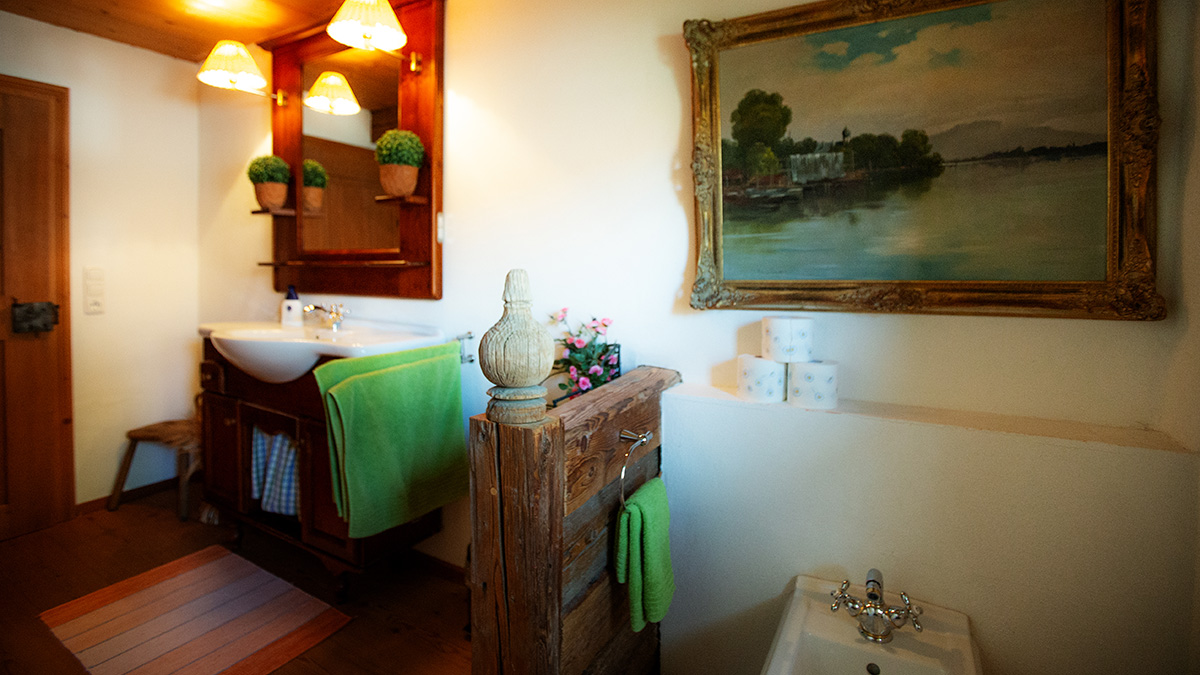 Schönes Zimmer mit eigenem Bad im renoviertem denkmalgeschütztem Rottaler Bauernhaus mit Lehmputz und alten Baustoffen.
