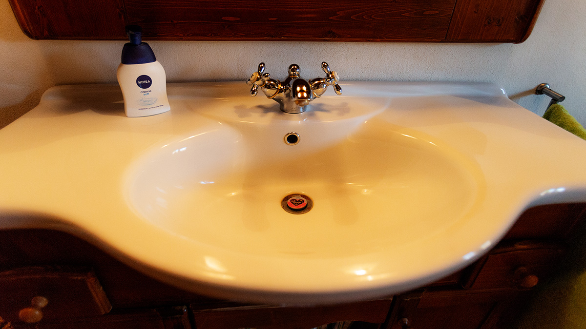 Großes Bad mit Bidet. Dusche in Tadelaktausführung, Dielenboden und Lehmputz auch im Bad.