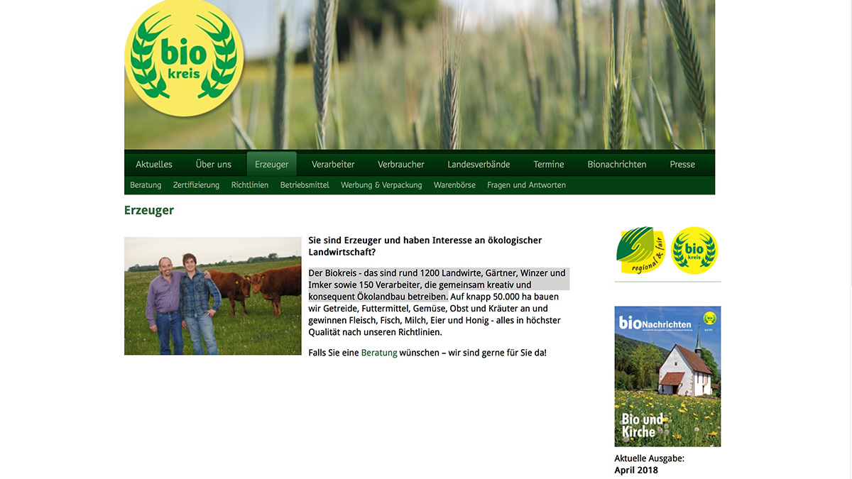 Der Biokreis - das sind rund 1200 Landwirte, Gärtner, Winzer und Imker sowie 150 Verarbeiter, die gemeinsam kreativ und konsequent Ökolandbau betreiben.