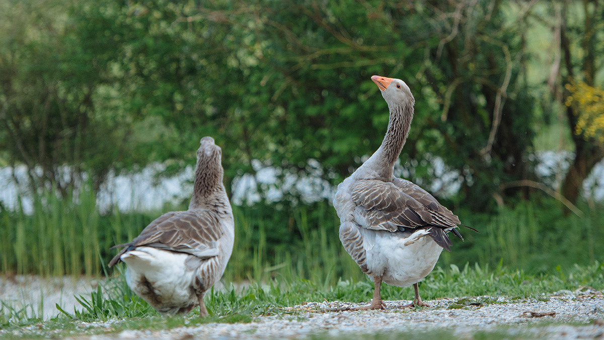 Unsere Bio-Weidegänse werden artgerecht im Kreislauf der Natur aufgezogen, mit einem Teich zum Schwimmen und einer Weide, auf der sie genug Platz haben, um sich naturnah und mit einem gesunden Sozialverhalten entwickeln zu können. Durch die Größe der Gänseweide haben sie ausreichend Bewegung was sich in einem optimalen Fettanteil im Fleisch auswirkt.
