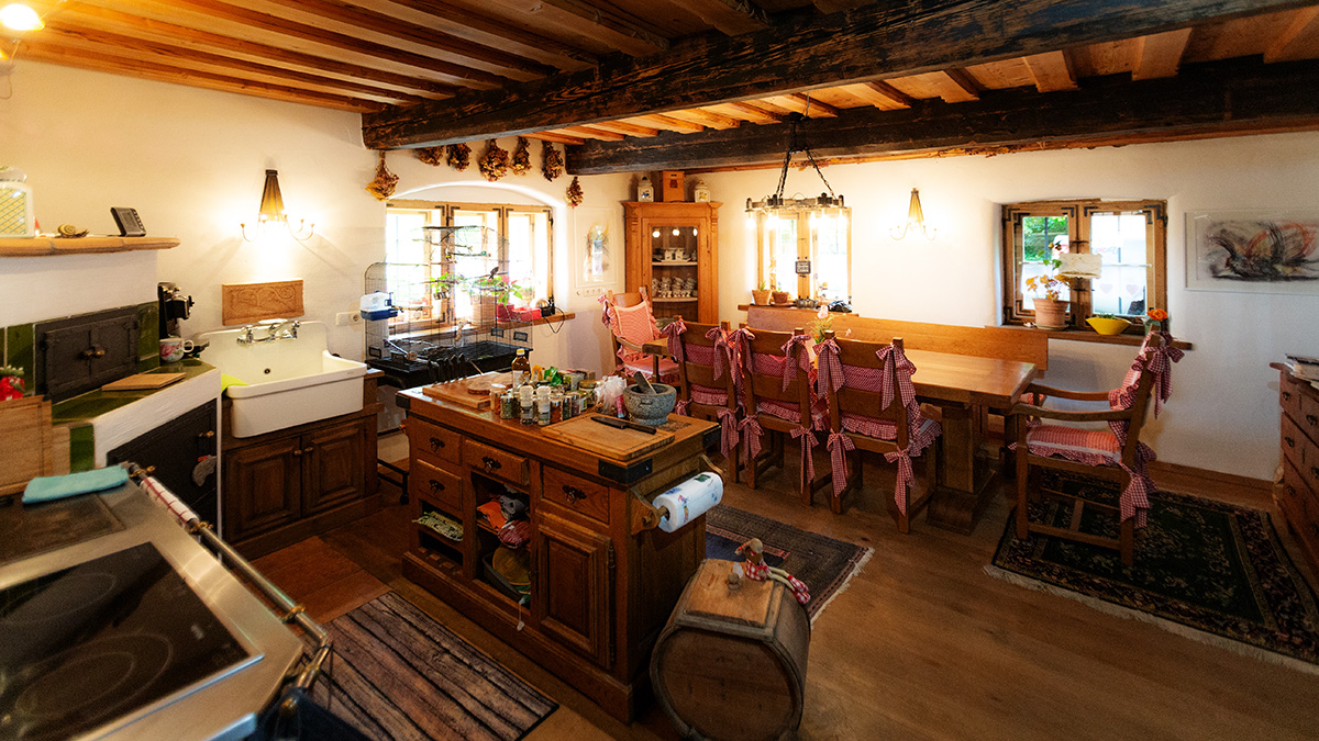 Schönes Zimmer mit eigenem Bad im renoviertem denkmalgeschütztem Rottaler Bauernhaus mit Lehmputz und alten Baustoffen.